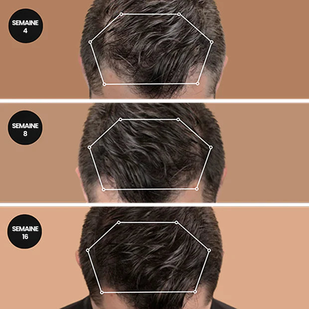 En seulement 16 semaines, Hair-Man stimule la repousse et densifie la chevelure, jour après jour.