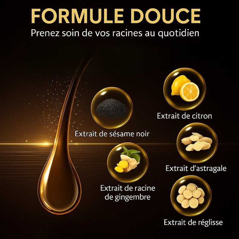 Activation des follicules : Le Gingembre booste la microcirculation tandis que l’Astragale réveille les follicules endormis, favorisant une croissance capillaire durable.